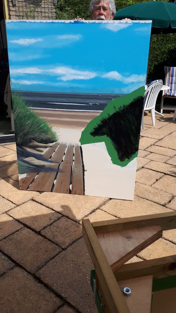 Het verhaal zal vooral gaan over de realisatie van een reproduktie van een foto van een strandovergang op panelen in Leerdam, die na de realisatie zal worden gemonteerd op de binnenplaats van onze vakantiewoning in Zierikzee. De grootte wordt ca 2 x 2 meter.